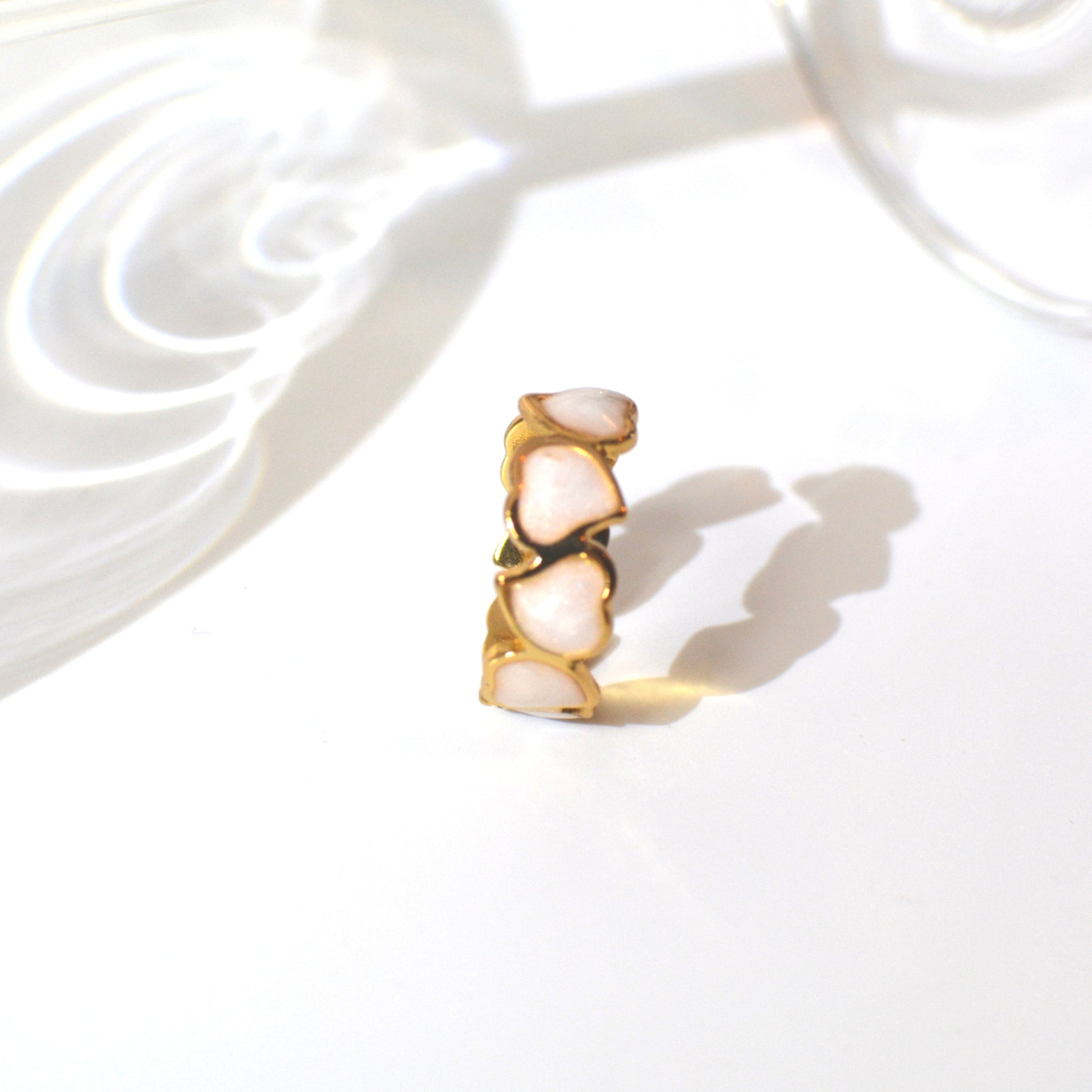 This trio features three adjustable designs: a delicate heart with a white accent, a structured three line band with circular details and an abstract form that captures creativity in motion. Crafted in stainless steel with 18k gold plating, these lightweight rings are perfect for stacking or wearing solo. A reminder to embrace every facet of your own story.