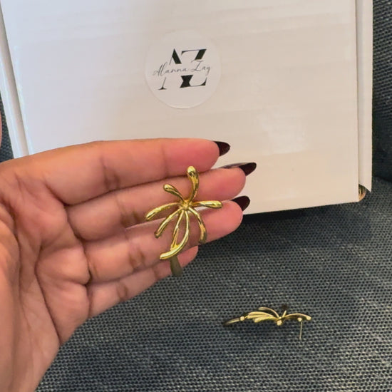 Crafted in stainless steel with 18k gold plating, their petal like design with a graceful stem evokes nature’s strength and beauty, echoing Artemisia’s fearless expression through her art.